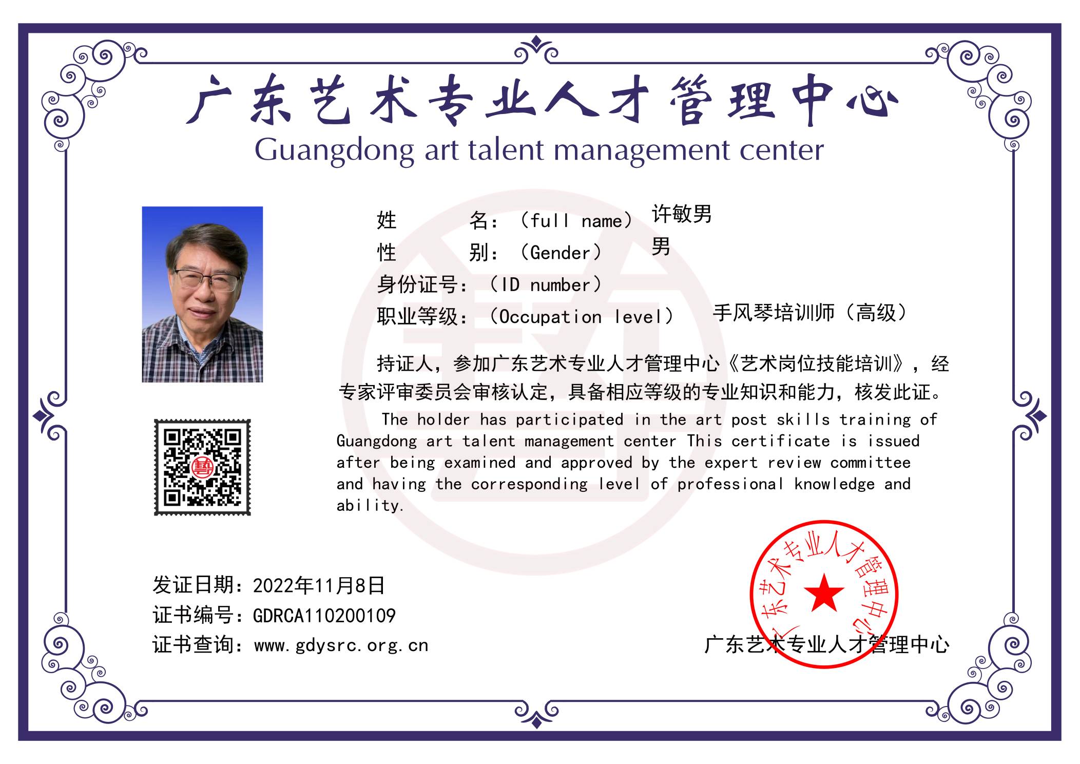 许敏男GDRCA110200109